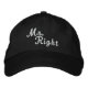 Embroidered Mr Right Scroll Text In Black And White cap (this hat can be matched with the Mrs Always Right cap in store) .. Mr. Right from Ricaso