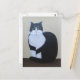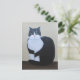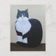 Folk Art style acrylic painting of a handsome black and white cat sitting with his tail neatly wrapped over his feet. He sports small ears and big eyes. Painted by artist Rachel Barrette.