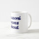 The official Masoni Raves About logo on a mug. For coffee.