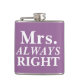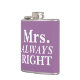Simple and cute, customisable Mrs. ALWAYS Right Bride's Flask.