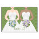 Mrs and Mrs two brides in wedding dresses holding floral bouquets - Wedding table cards gay / lesbian pride wedding / civil ceremony table setting cards. designer gay wedding placements from Ricaso