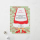 This is an adorable Christmas card for family and friends.  It has a light  green background with words written all over it in re, black, and white. Words like: wreath, sleigh, cookies, and many more.  In the centre is a large picture of Mrs. Claus's red dress with with her white apron. She's wearing red shoes Personalise with holiday wishes on her apron. Check out the many other designs and products we have in Christmas our store. © JW Illustrations