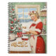 In a cosy, snow-covered kitchen, Mrs. Claus is captured in the midst of holiday baking. Dressed in a festive red dress with fur-trimmed sleeves, and a matching apron, she smiles warmly as she prepares a fresh batch of cookies. The scene is filled with Christmas cheer, complete with a beautifully decorated tree adorned with candy canes and red ornaments, while snow gently falls outside the window, adding to the magical atmosphere of the season.
