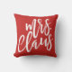 This adorable holiday throw pillow says "Mrs. Claus" in a modern white handwritten script. Choose any colour background.