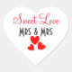 Mrs + Mrs Sweet Love Red Hearts Personalised Heart Sticker