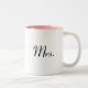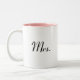 Pink and Blue Mr and Mrs mugs set with cursive handwriting