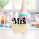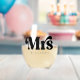 Stemless wine glass with the text "Mrs" in a retro style font, along with the name below.