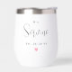 Custom Mrs. wedding wine tumbler for her features modern black script text that can be personalised with the newlywed bride's married last name and established wedding date. Includes a cute pink heart accent. Makes a special gift for the newly married Mrs!