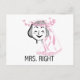 Our Mrs. Right T-shirts,  hoodies, tank tops, buttons, cards, stickers, keychains, and other items are cute items for the new bride, especially when paired with our Mr. Right Tshirts and gifts. Features a bride with a pink veil with hearts and black text that reads "Mrs. Right"!