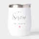 An elegant Mrs thermal wine tumbler featuring refined script with a custom last name monogram and established wedding date, accented by a delicate pink heart. The graceful typography on a clean white tumbler creates a sophisticated bridal keepsake. A beautiful gift for the bride on her wedding day, bridal shower, or anniversary. Pairs with the matching Mr tumbler. All text is fully customisable.