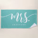 Mrs Teal And White Newlywed Bride Personalised Beach Towel