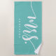 Mrs Teal And White Newlywed Bride Personalised Beach Towel. Modern script personalised name beach towel. Perfect honeymoon towel for the bride. Personalise this custom design with your own name or text.