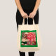 The printing came out very well, better than I had anticipated. The natural color fabric is sturdy with strong seams and comfortable handles. This tote fits easily over my shoulder. As it is filled, the bottom flattens out--very cool! I would buy this product again. This grocery tote holds a lot of groceries! The image quality was very good. The colors were a little darker than I had expected. The darkness may have been due to printing on a natural color fabric rather than on white. The cat design is attractively centered on the tote. The spirit of the design is very lively, just as it appears on the Zazzle website.
