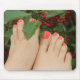 msfootwonder poses her feet among some small shrubs and foliage, making a very unique mouse pad from Barefoot Georgia Peaches