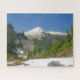 The snow-covered cone of Mt. Baker rises into a bright blue sky. Below the mountain, a small alpine lake is seen through a forest of evergreen trees. The snow in the photo's foreground is bright in the sunlight. Mount Baker, also known as Kulshan or Koma Kulshan, is a prominent volcano in the Cascade Mountains of Washington state. Bring this magnificent landscape to your home with this puzzle, and enjoy putting it together. This scenic photo is also available on puzzles in other sizes and piece counts, so you can choose the difficulty level that's just right to challenge you and your family. Enjoy the scenery!