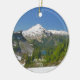 The snow-covered volcanic cone of Mt. Baker rises above the surrounding ridges and into a clear blue sky. The mountain peak overlooks a small alpine lake that is visible through the stand of evergreen trees in the foreground. Mount Baker, also known as Koma Kulshan or Kulshan, is a prominent peak in Washington state's Cascade mountains. The volcano has an active crater that blows steam. Bring this beautiful landscape from the Pacific Northwest to your Christmas tree with this ornament. Just add the current year or the year in which you or someone special visited this spectacular scenery. The text "Mt. Baker" is also customisable. The back of the ornament has the same scenic view without the text. This ornament is also available in other fun shapes, including premium round and square ornaments with a metal frame. Enjoy choosing your favourite style for this mountain vista!