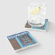 The coasters are gorgeous, a quality feel and heavy weight. They look like a precious archeological find. A rustic stone juxtaposed with a modern floral black and white print. I like the way the print goes slightly imperfect on the cut stone edges giving them a kind-of natural beauty.
