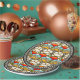 This vibrantly coloured paper plate was inspired by an eclectic blend of artistic styles (vintage Japanese wallpaper, costumes designed by Alphonse Mucha, and various works by the Art Deco ceramicist, Clarisse Cliff), the original digital painting by Leslie Sigal Javorek that's featured brings together pleasing colours, organic forms, and bold distinction to your table.