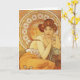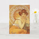 Art Nouveau. Alphonse Mucha created "The Precious Stones Series" in 1900. He included the Amethyst, Emerald, Ruby and Topaz The "Topaz" is in golden tones with his signature medallion framing the woman's head. The inside of the card shows the full image. Perfect for anyone with a birthday in November. Enjoy.