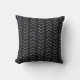 Trendy mud cloth pillow in black and white with dyed fabric texture.