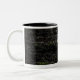 Muddy rugby ball sitting on a chewed up grass Two-Tone coffee mug