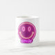 Bring joy to your day with this cute and cheerful mug featuring a smiling face and the word “Smile.”