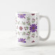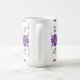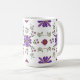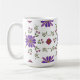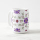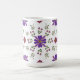 Sip your favourite brew in style with this vibrant floral mug. Perfect for brightening up your morning routine! This whimsical folk art floral pattern wraps around the mug and features purple and red flowers with gold accents and fresh green leaves against the white background of the mug.