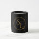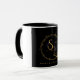 A coffee mug with a cute black and white pattern with summers ray of light logo
