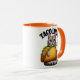A whimsical scene where a cat is holding a taco in one paw and a drink in the other, showcasing a playful moment of the cat enjoying a meal. He is a taco lover