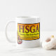 This 15 oz mug has a slightly different version of the HSGA logo, with the guitar off to the side, repeated on both sides.