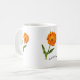 Orange calendula flower with rain drops on petals, green stem and leaves.