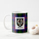 This classic white mug features the ancient arms of Clan MacLennan superimposed on the clan tartan on one side and another version of the clan crest badge on the other side.