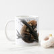 A classic beverage mug showing a cute White-nosed Coati (Nasua narica), a member of the racoon (procyonidae) family, curled up in a tree and trying to take a nap.