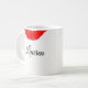 Ceramic coffee mug shown with a lips print and a custom name sample.