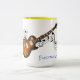 For the music lover, musician, or music teacher, this Coffee Mug makes a great gift and features an Electric Guitar. ►Customise/personalise by moving or removing any of the images or text (the Guitar can only be moved, not removed), add an additional image, add additional text (recipient's name, a favourite artist's name or song lyrics, etc.). The interior is shown in yellow but you can replace it from a selection of colours. Available in several mug styles and sizes.