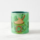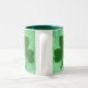 Mug for St. Patrick's Day with an image of a hot chocolate with shamrocks, a hat, straws, and cream on a watercolor green background.  Thanks to Creative Fabrica for some of the elements in the design.