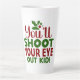 Funny Christmas latte mug with the phrase "You'll shoot your eye out, kid!" Perfect for holiday coffee, cocoa, or tea. Makes a great gift or festive addition to your kitchen this Christmas!