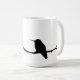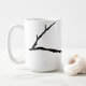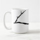 Hummingbird sitting on bare tree branch. Black silhouette wraps around mug.