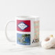 Mug of Arkansas with Arkansas state map, state flag, state flower and state bird, this is one of the 50 designs featuring 50 United States.