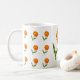 Single orange blossom is centred on the front of the mug with the curved title "Calendula" at the lower right. Raindrops can be seen clinging to the lower petals. The sides of the mug have a smaller, single blossom multiplied on three rows.