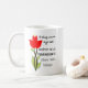 Mug personalized with sentence “To grow is this” and illustration of flower.