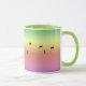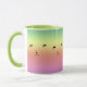 As expected, the mug was of good quality. I was not certain about the green ringer color and the colors on the mug. They blended quite well, the Ringer color was not quite as yellow as I expected and coordinated with the rainbow greens.