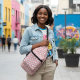 Super cute! Exactly as shown on the site. The pockets and storage are great. Perfect size for on the go. Exactly as expected. The personalized initial is adorable and the denim look pattern is chic and fun.
