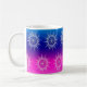 Star pattern in off-set tiled pattern. Dark blue horizontal stripe on top and pink on bottom. Star pattern is a 10% opacity and showing a lighter shade if the colour beneath. The design colours may be adjusted by moving the background image up or down, to choose the colours you like. (2 other colour examples are already available.)