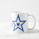 Blue stars. Two large stars on each side with your initial in the centre. Centre of design is three small blue stars in staggered grouping.