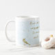 Proverbs 3:5 "Trust in the Lord with all thine heart.." bible quote mug in calligraphy with birds and stars. Blue watercolor background. There is a matching coaster. Thanks for looking.