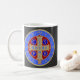 The two faces of the medal appear on either side of the mug. Featuring my own original rendering of the Cross of St. Benedict Medal