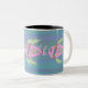 Mug with hand drawn pink jewelled fish with a painted water background.