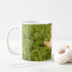 Mug with an image of a Golden Retriever running through the lush green field with ball in mouth.