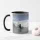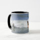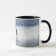 Mug with an image of people playing in the waves at the beach. The words on the mug are "I'd rather be at the beach".